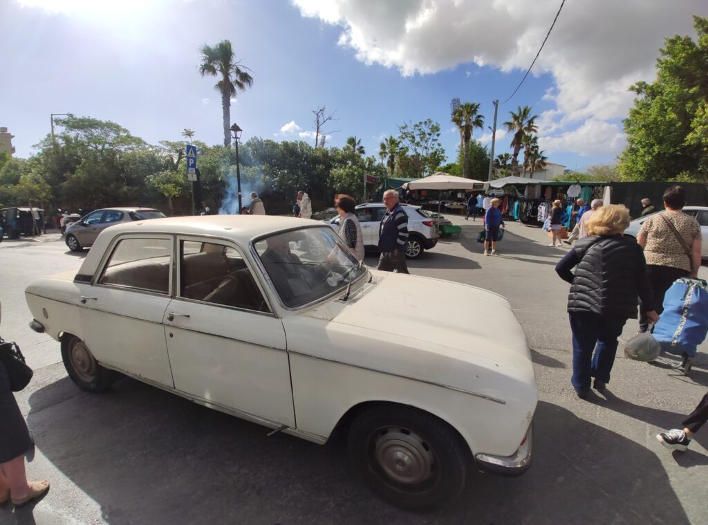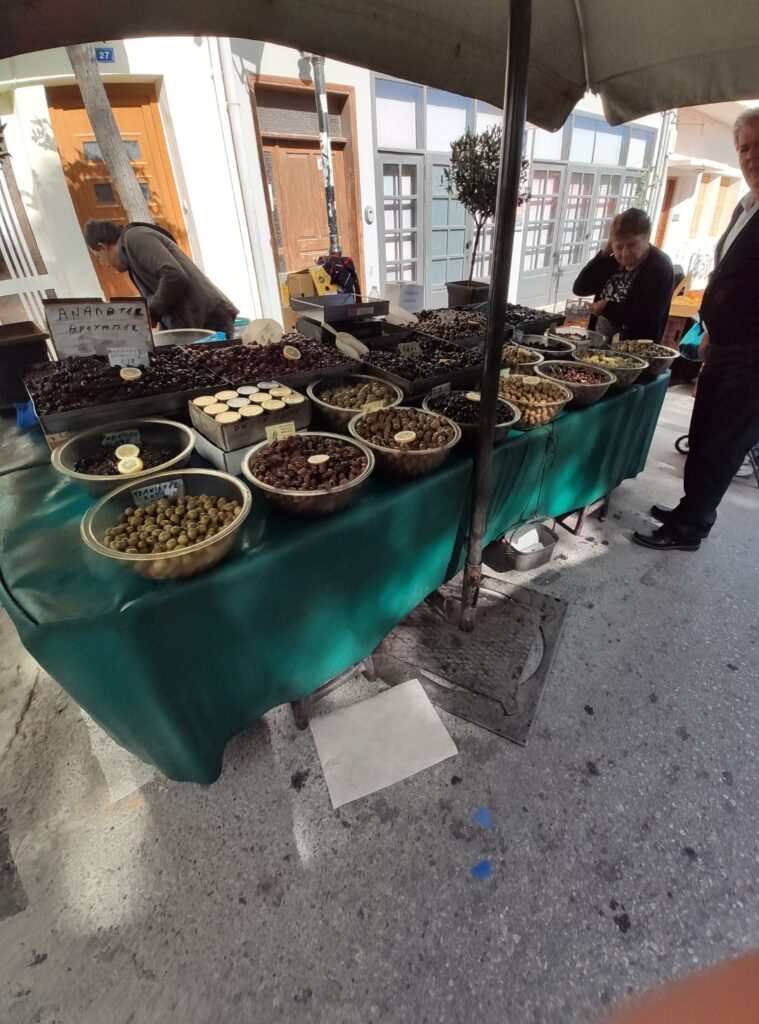 Le samedi matin, au réveil, l’agitation est déjà bien présente dans la rue devant notre maison à La Canée. Heureusement, nous avions repéré la veille les panneaux annonçant le marché et déplacé notre véhicule. Après un dernier petit déjeuner tranquille, nous profitons d’un moment de détente : une dernière baignade dans notre piscine intérieure et un brin de rangement pour nos affaires.