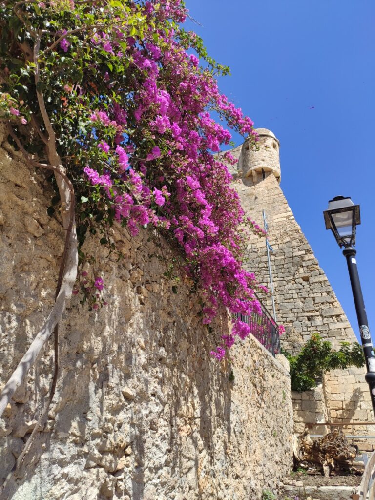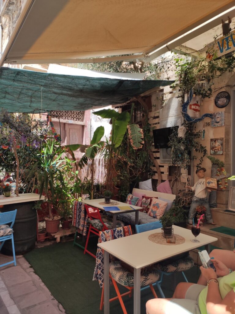 Nous reprenons la route vers Héraklion, longeant la côte nord de l’île. Après environ une heure de trajet, nous faisons une halte à Rethymnon, troisième ville de Crète, pour une dernière découverte. Nous stationnons vers l’ouest de la ville et partons explorer la ville à pied.