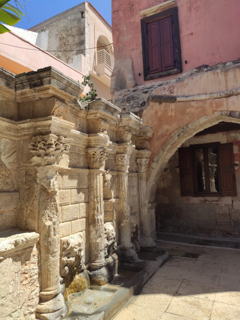 Le parcours nous mène à la forteresse, dominant le port et offrant une vue sur les toits de la ville et la mer. Nous découvrons ensuite la loggia vénitienne, le centre-ville animé, la fontaine Rimondi et la Grande Porte de Rethymnon. Les ruelles pittoresques, les places animées et les bâtiments historiques composent un décor riche et harmonieux. Pour le déjeuner, nous optons pour un repas sur le pouce, pris dans le jardin public, à base de délicieuses préparations locales provenant de boulangeries et de petits snacks du coin. Cette pause simple mais savoureuse nous permet de profiter encore un peu de la vie crétoise avant de reprendre la route.